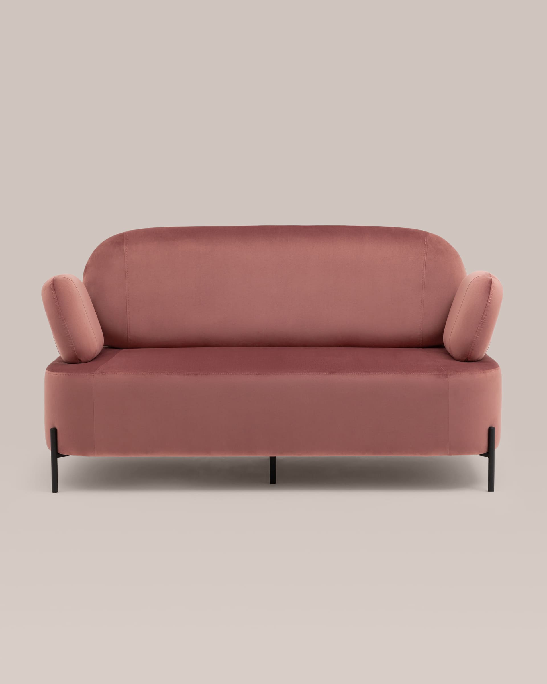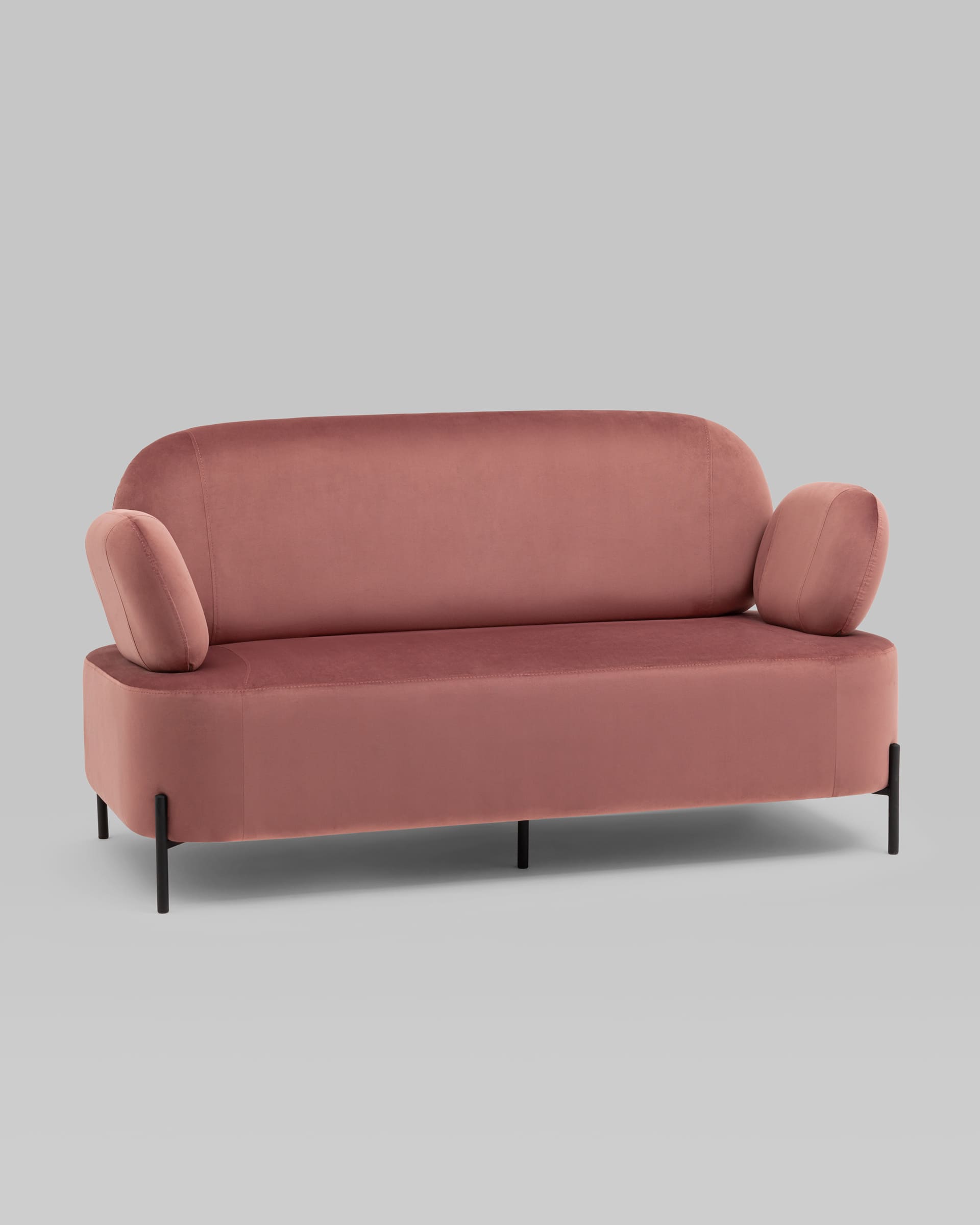 Диван с подлокотниками Кэнди велюр пыльно-розовый, ножки черные, металл