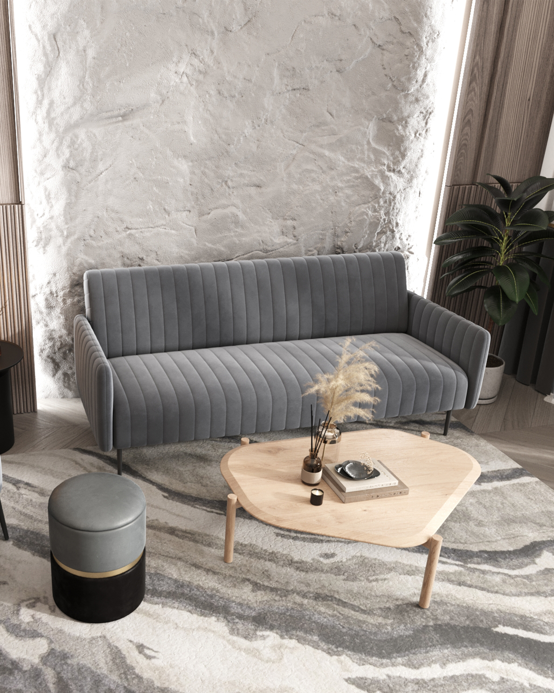 Диван прямой Дрезден велюр серый