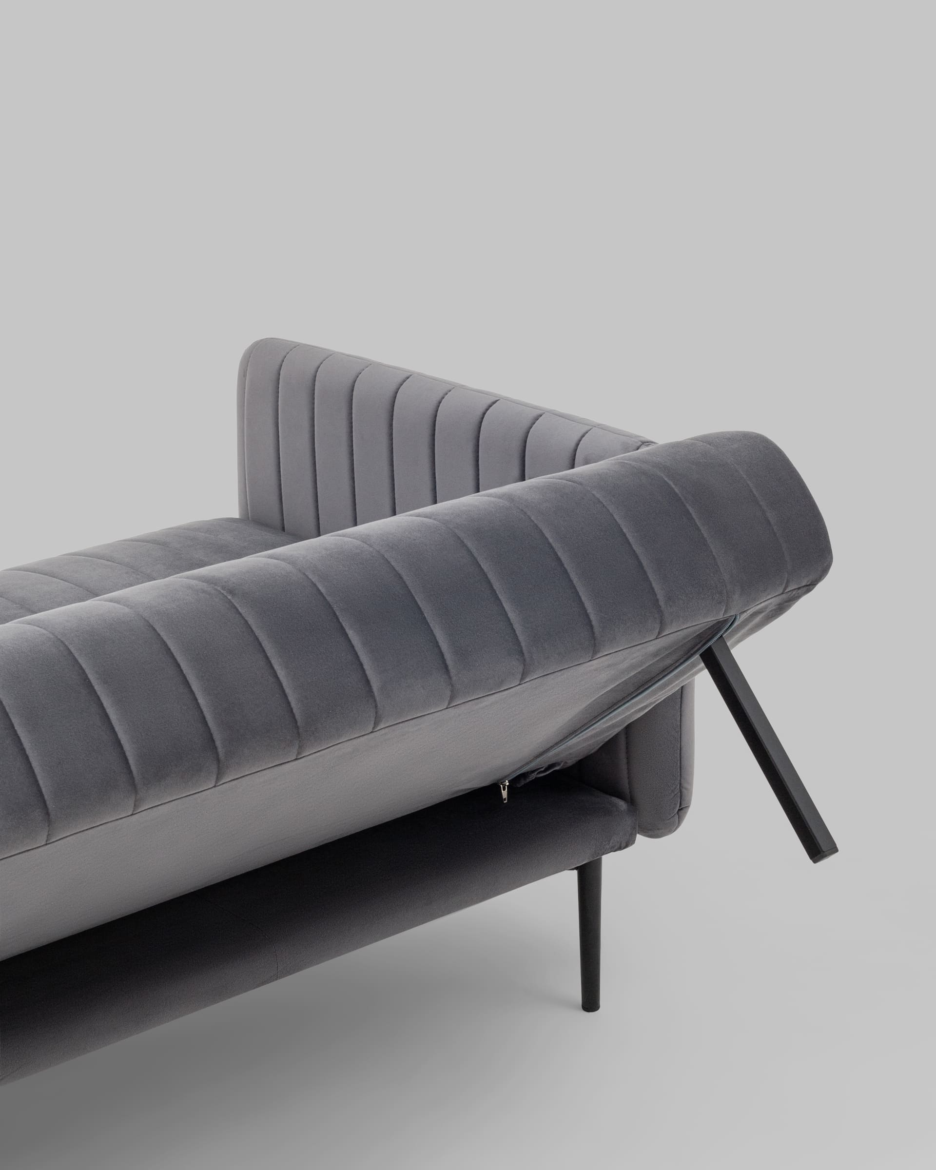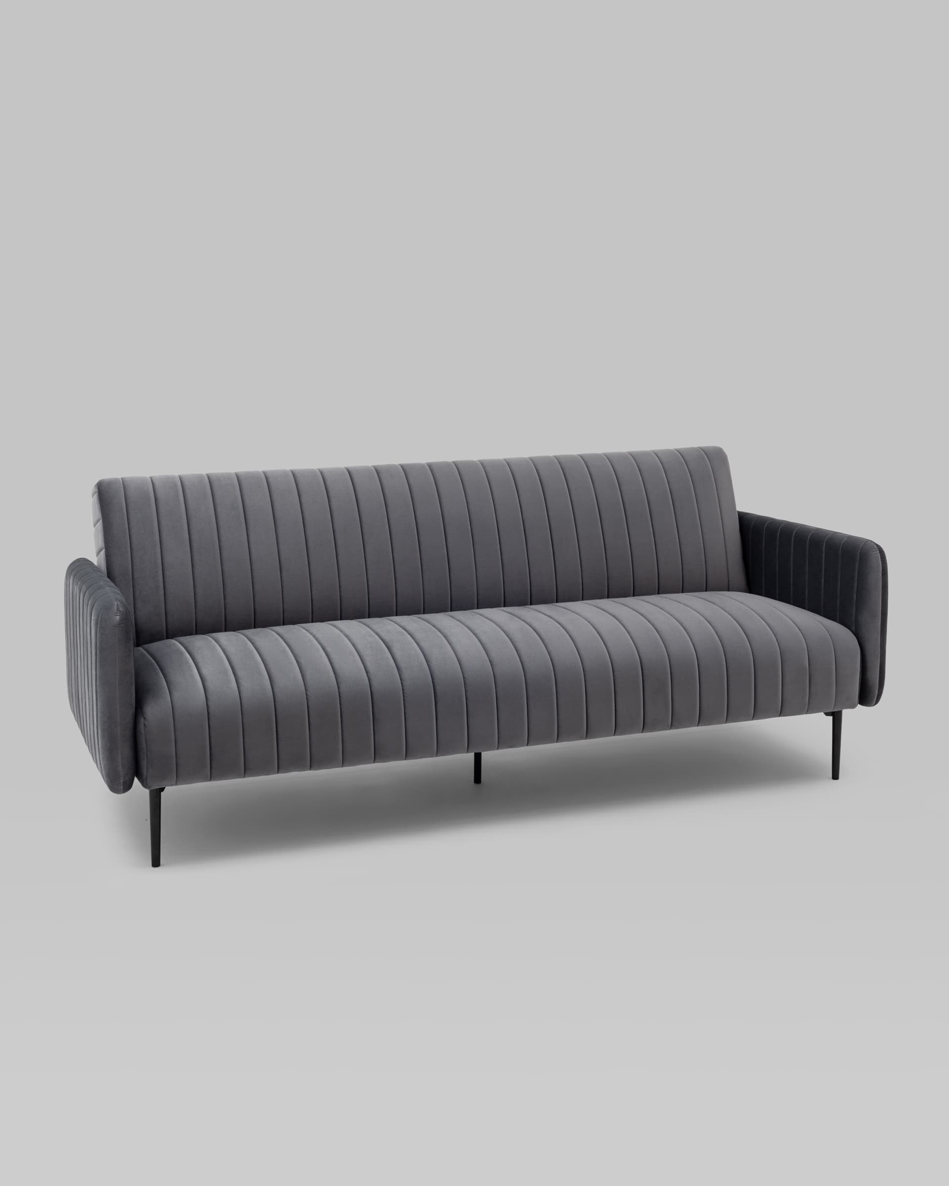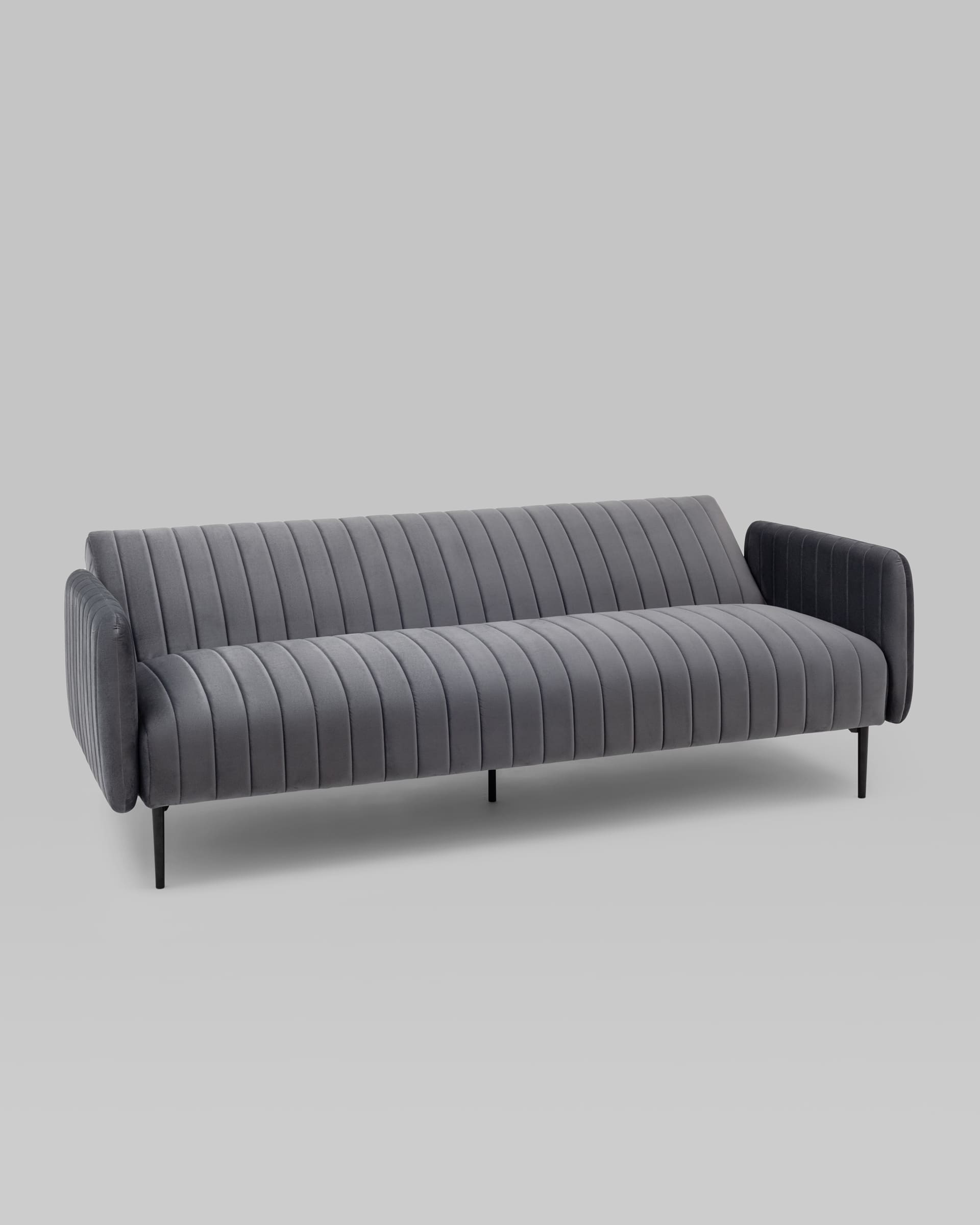 Диван прямой с подлокотниками Дрезден велюр серый раскладной ножки венге металл