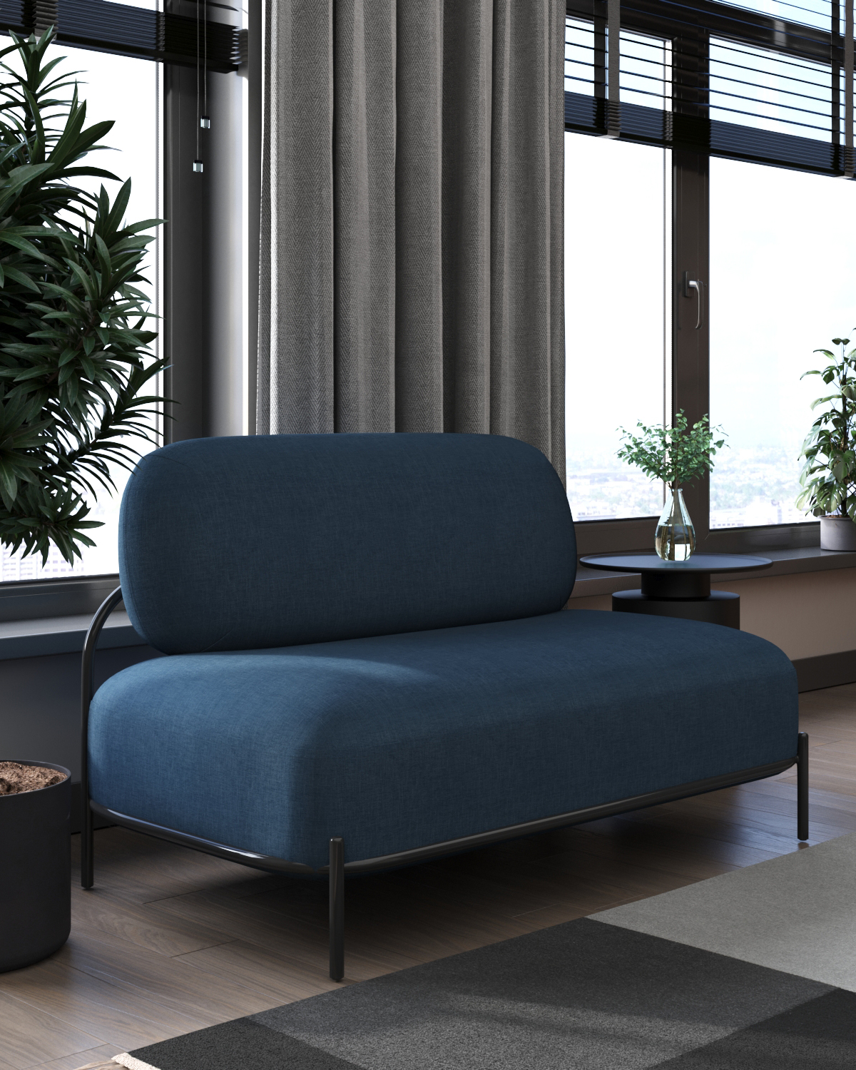 Диван без подлокотников Стоун рогожка синий, ножки черные, металл