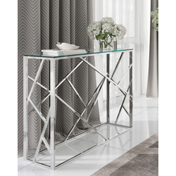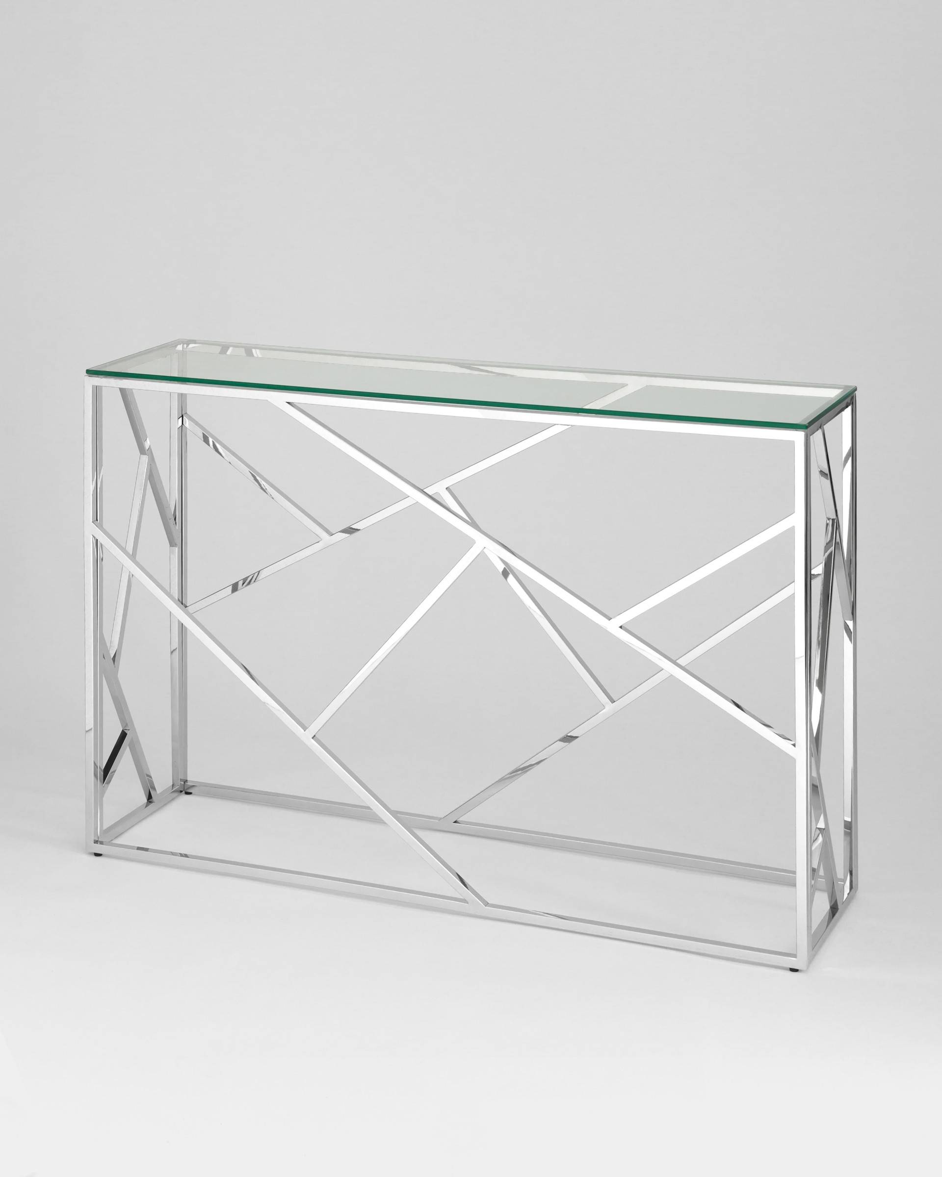 Консоль Stool Group АРТ ДЕКО 115*30 серебро, каркас нержавеющая сталь, столешница закаленное стекло
