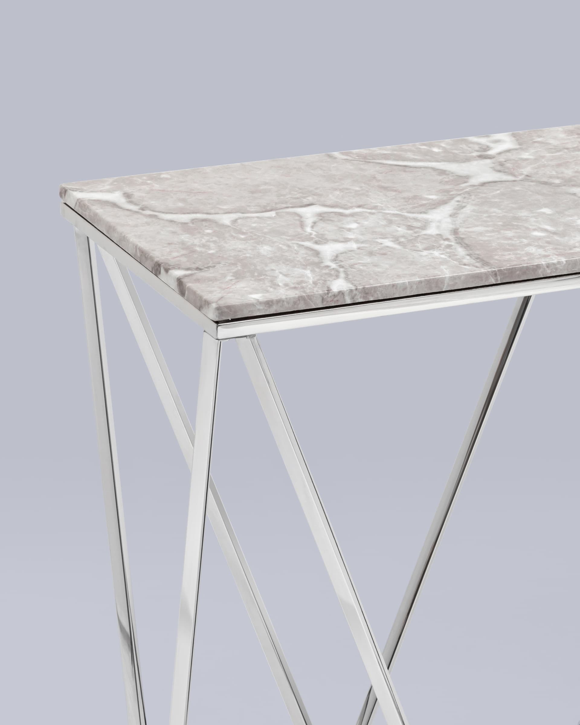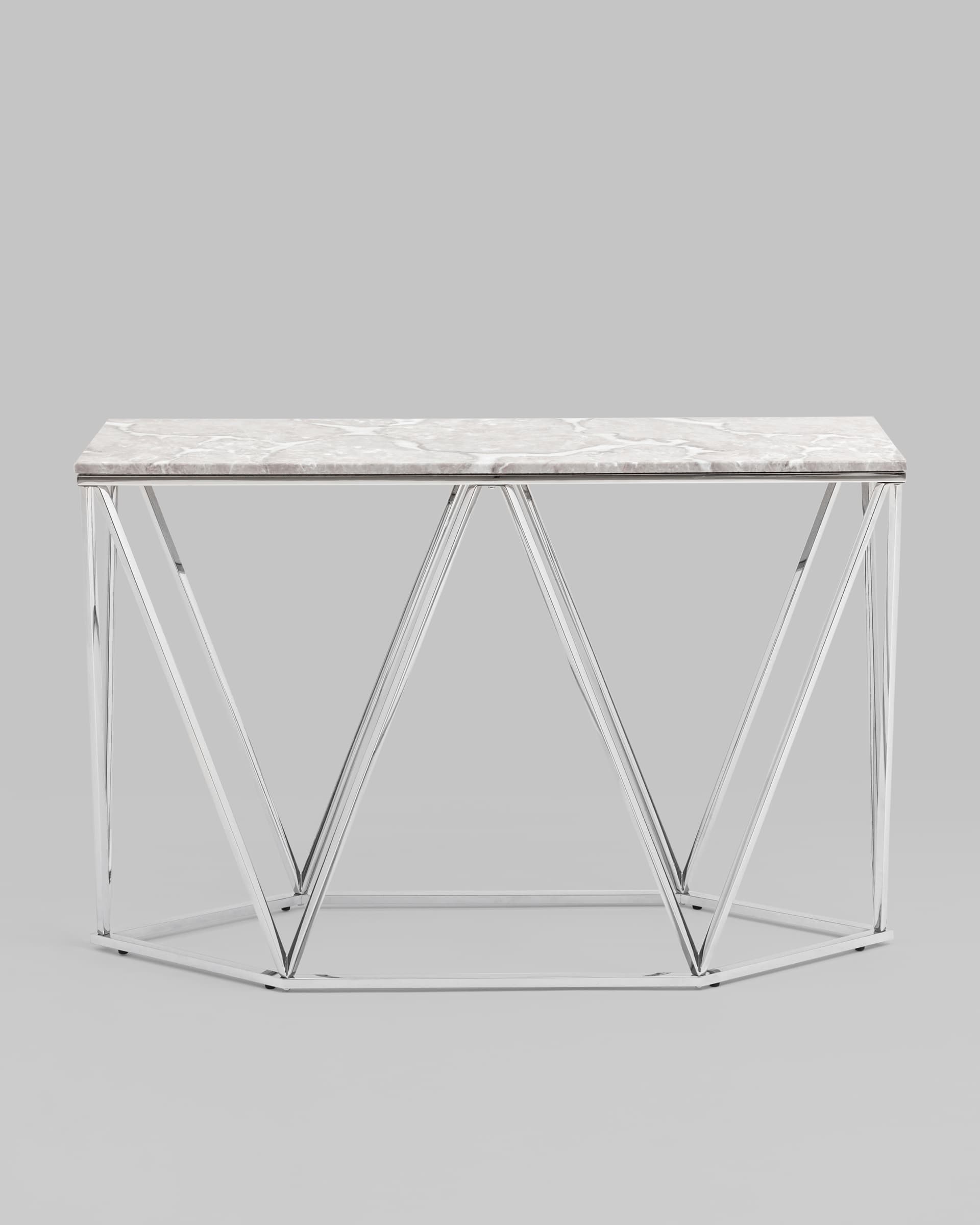 Консоль Авалон 122*41 серый мрамор каркас нержавеющая сталь серебро