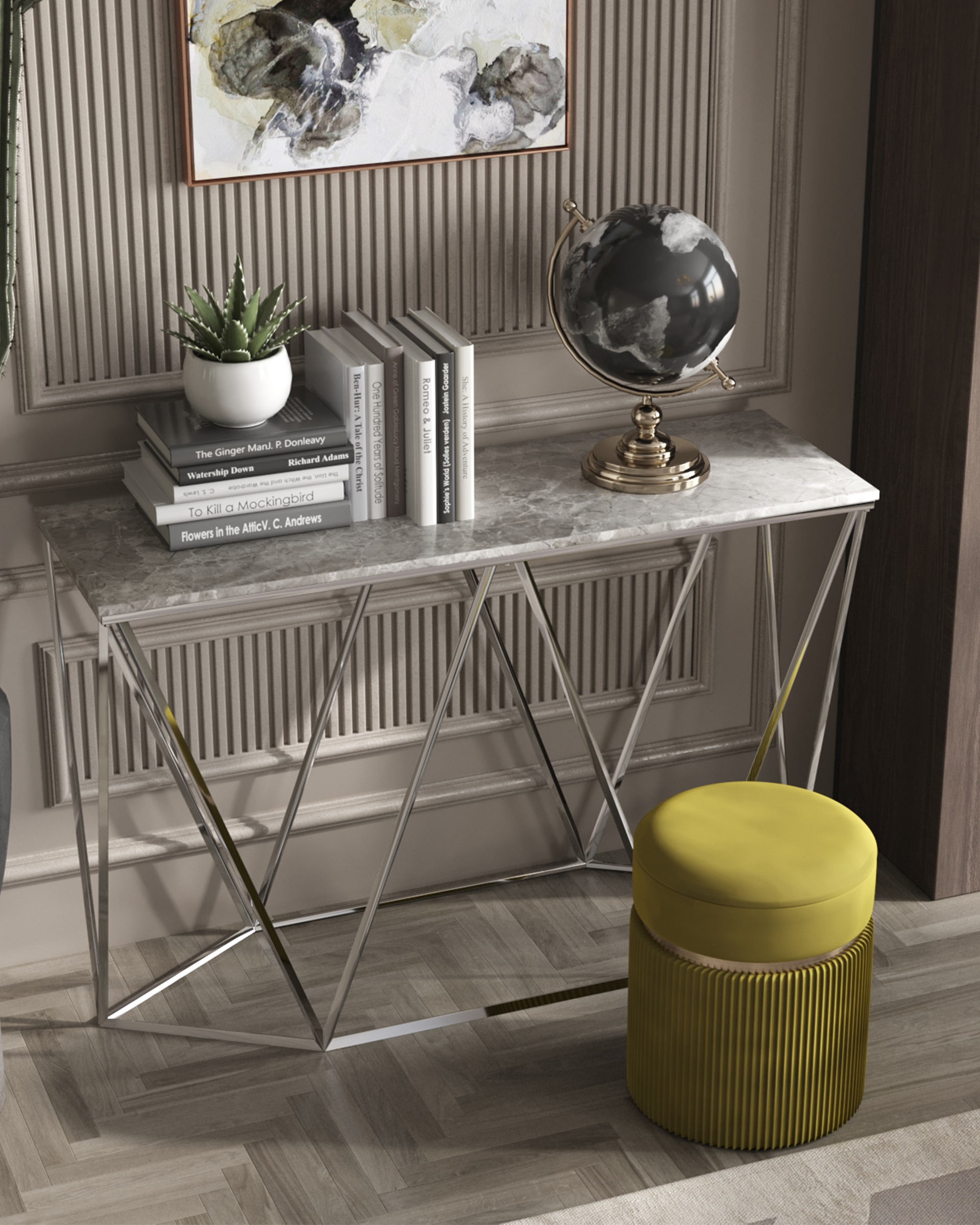 Консоль Авалон 122*41 серый мрамор сталь серебро