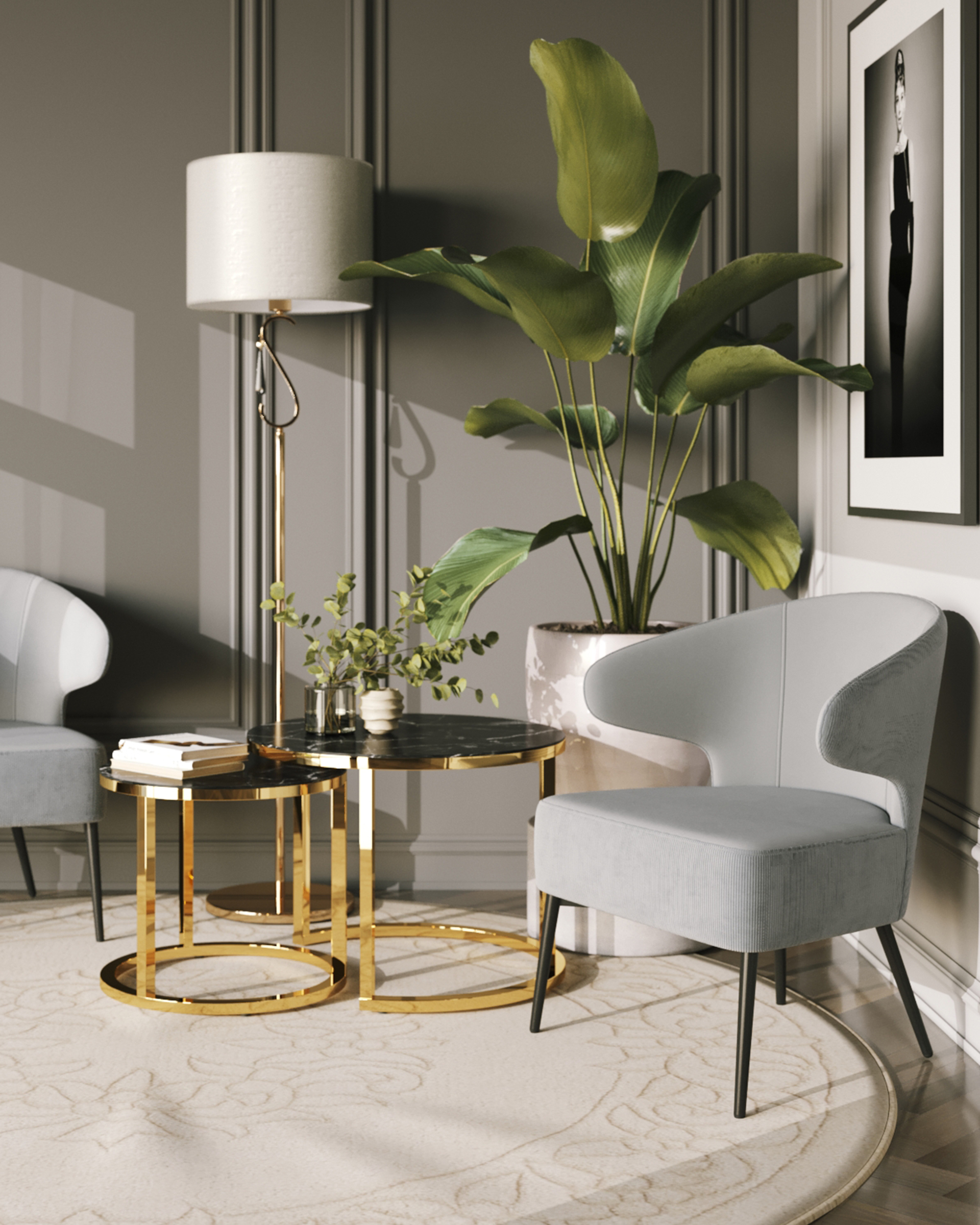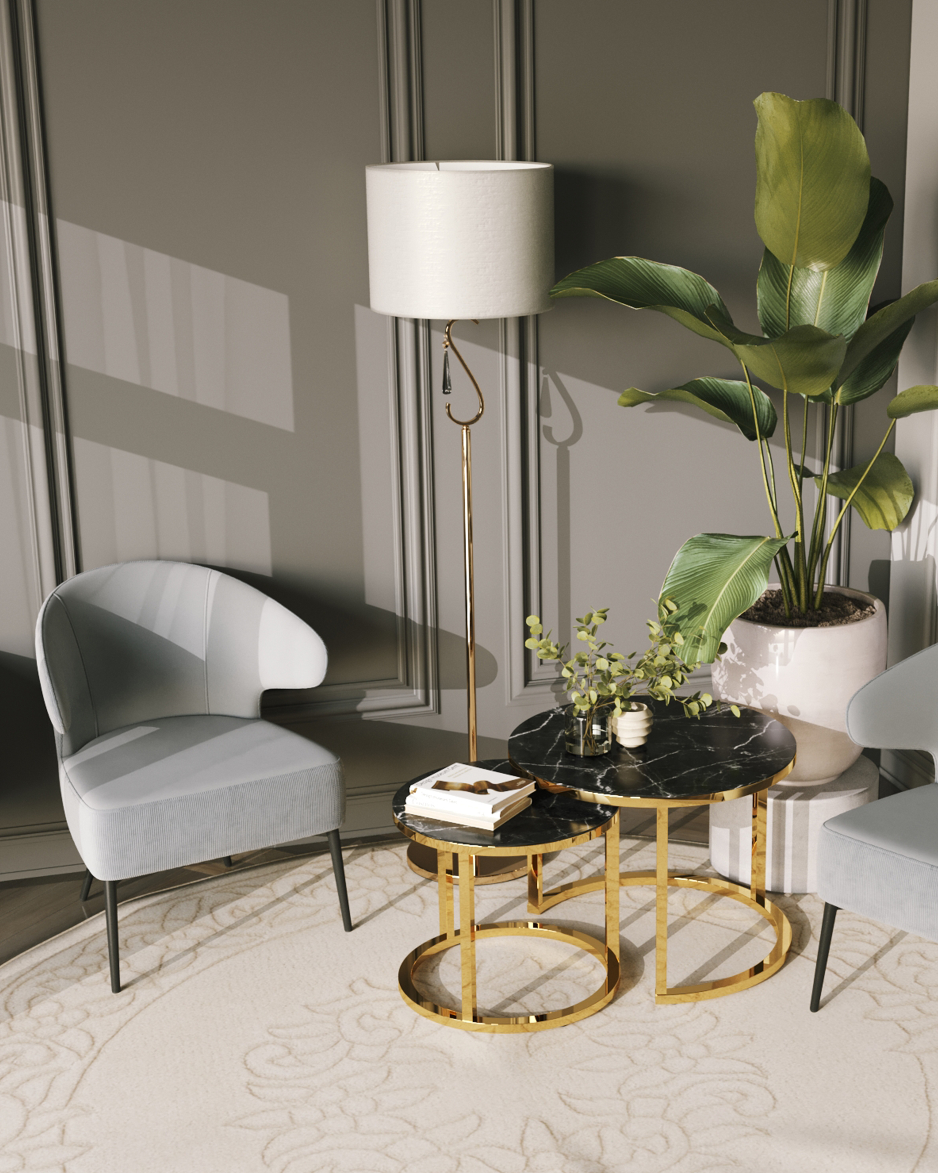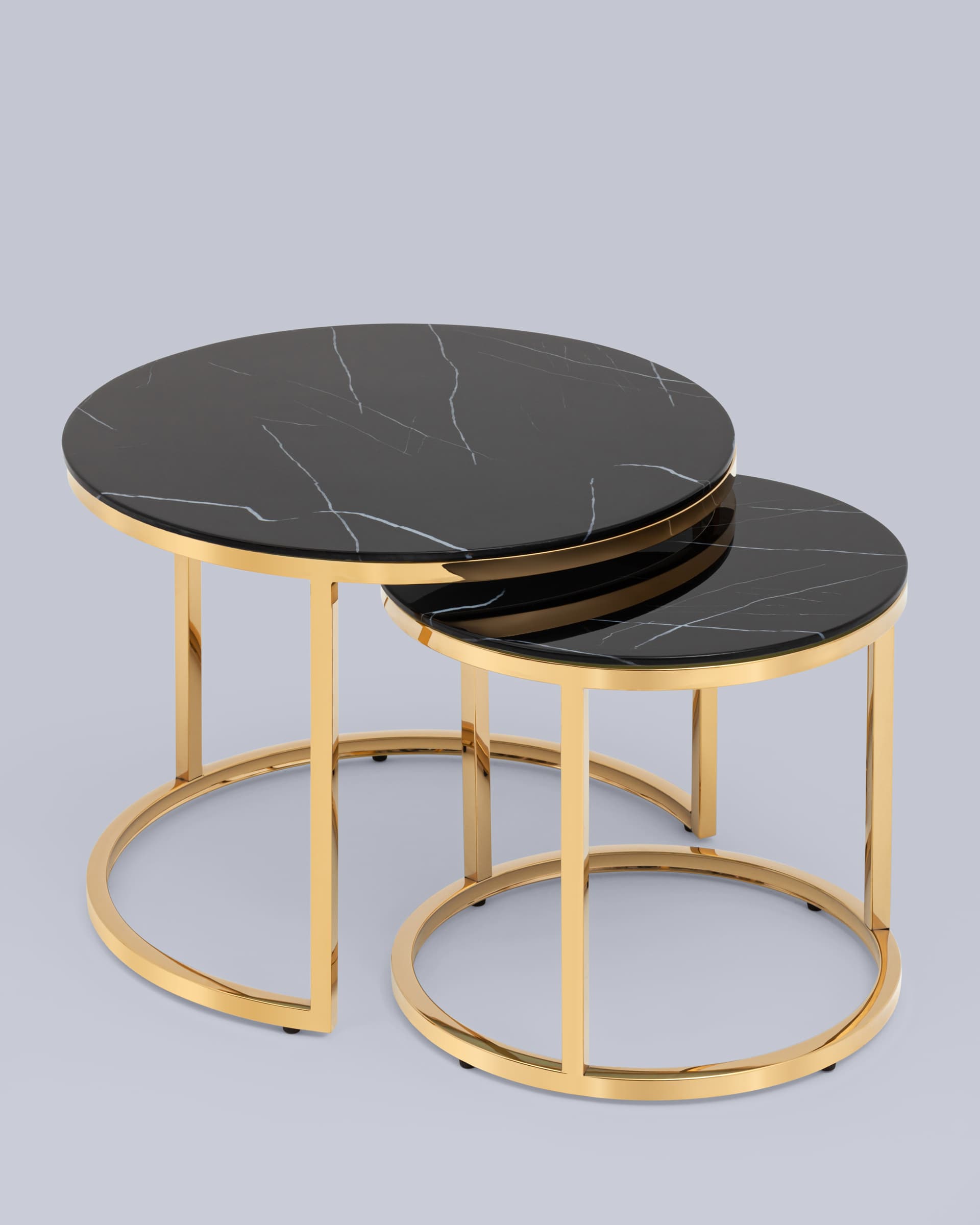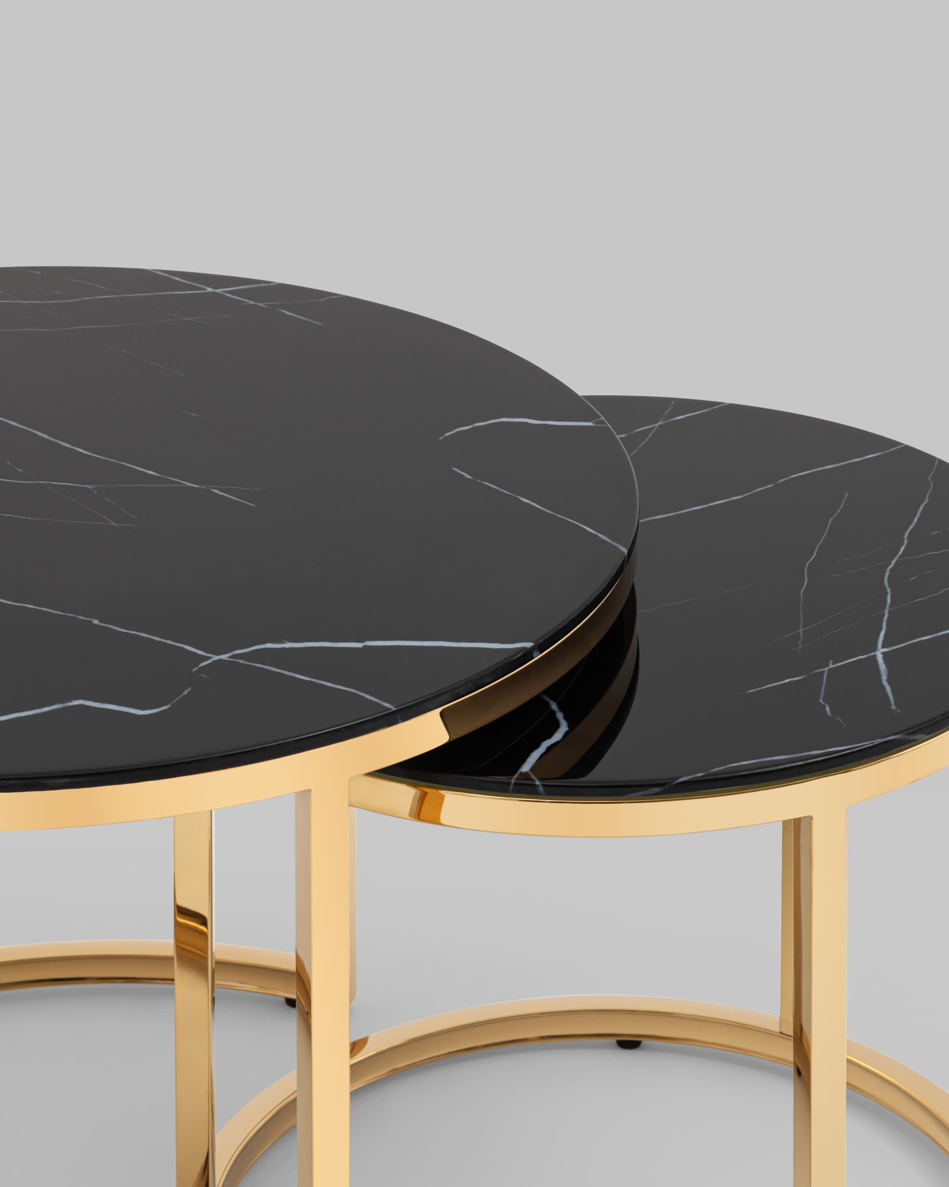 Набор журнальных столиков Селена 60 и 45 см стекло черный мрамор каркас нержавеющая сталь золото