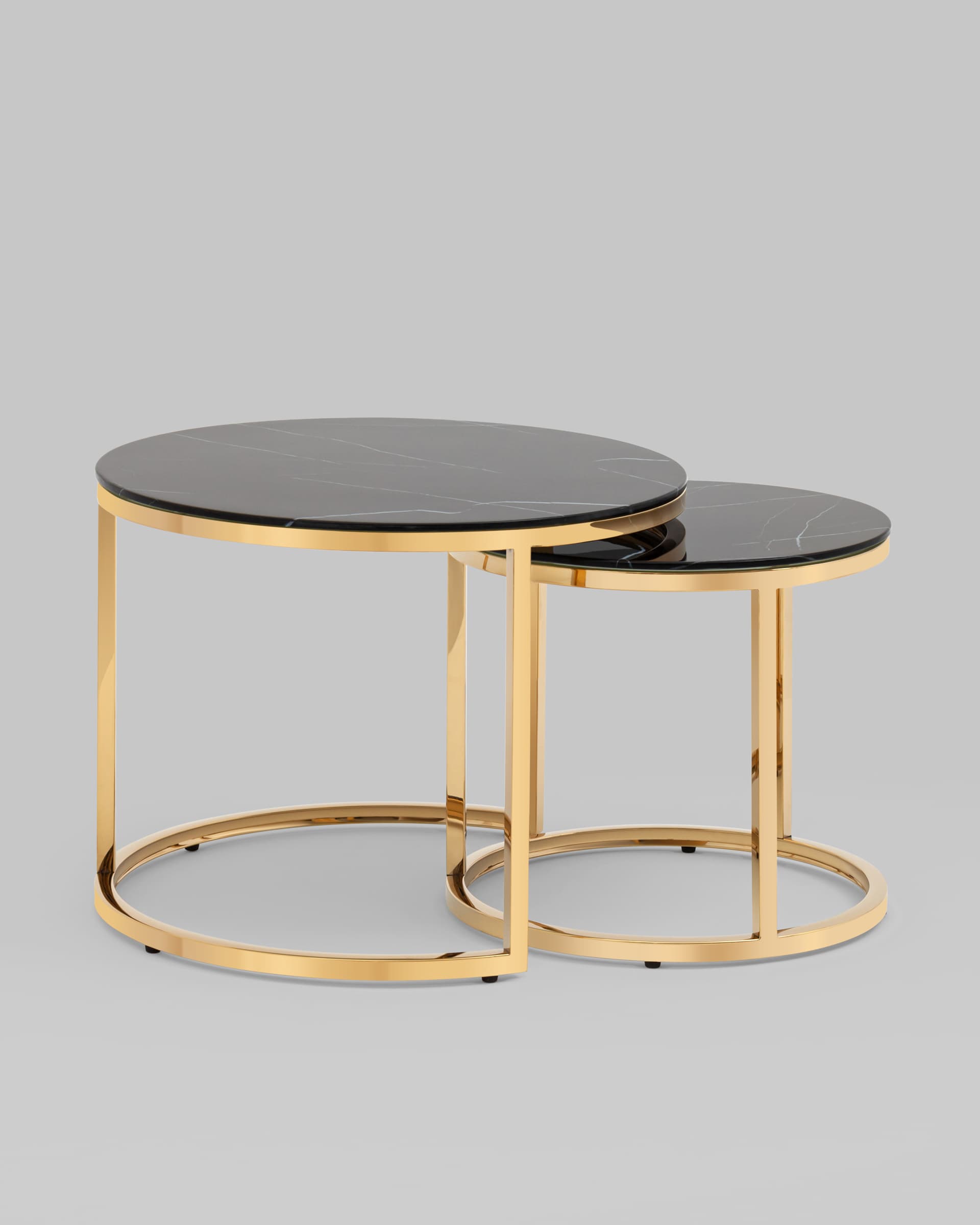 Набор журнальных столиков Селена 60 и 45 см стекло черный мрамор сталь золото