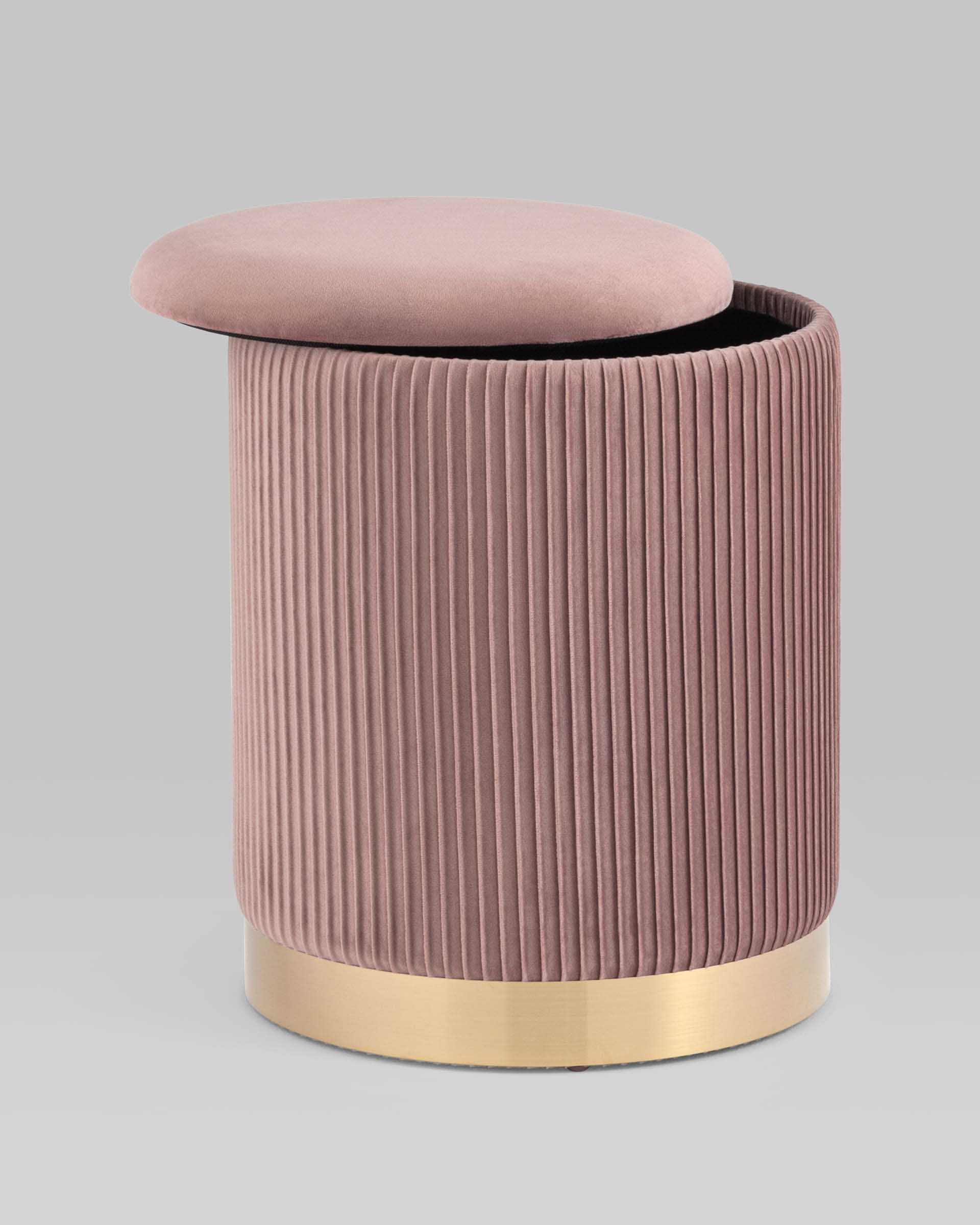 Пуф Шарлотта с ящиком велюр розовый с металлическим основанием в золотом цвете