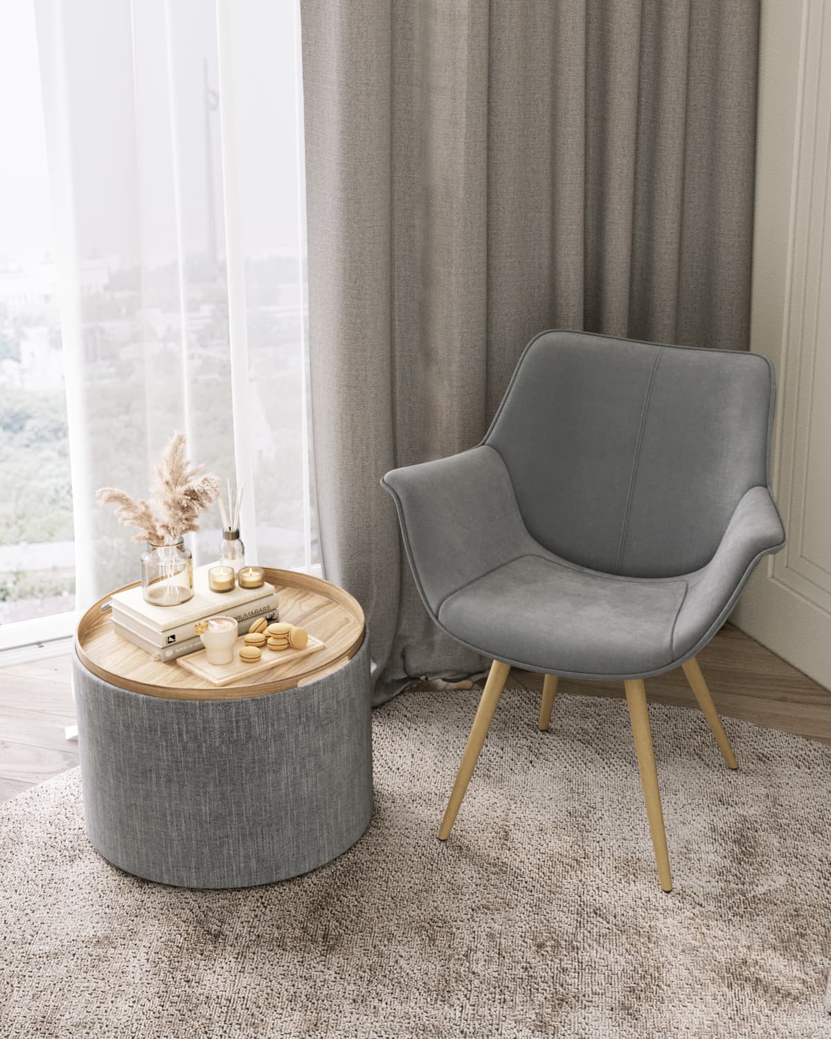Пуф-столик с ящиком Хюгге L рогожка серый