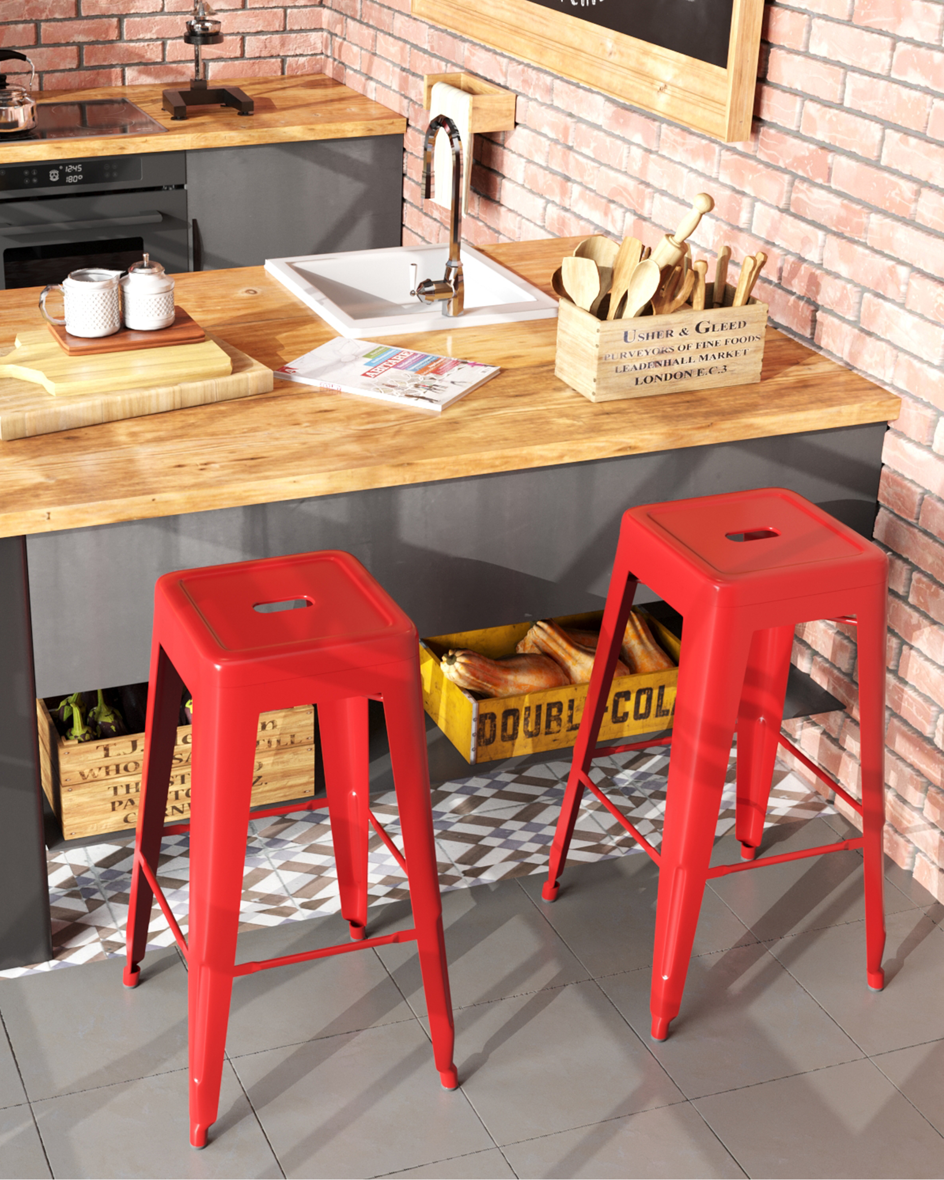 Стул Stool Group барный TOLIX красный глянцевый, широкое удобное сиденье, металлические ножки