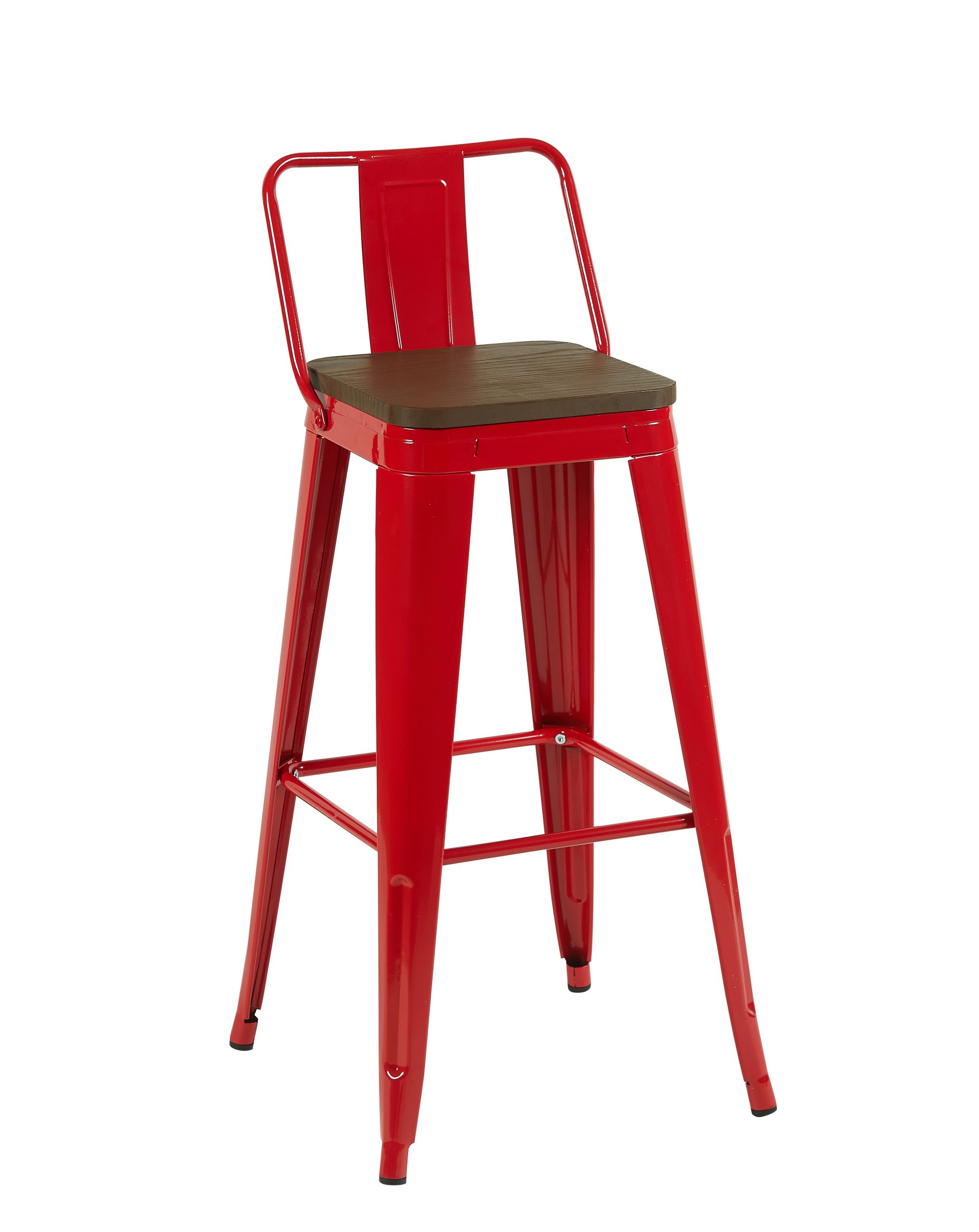 Стул барный TOLIX со спинкой красный глянцевый + темное дерево KD