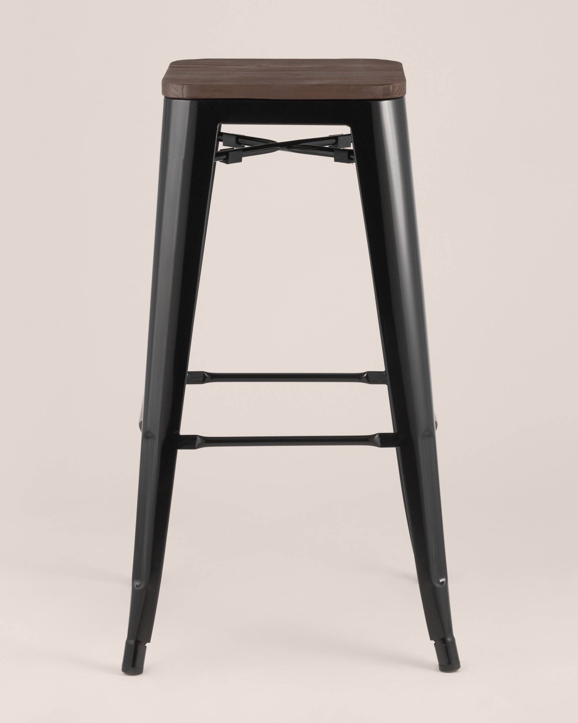 Стул Stool Group барный TOLIX WOOD черный глянцевый, оцинкованный металл с порошковым напылением, сиденье из натурального дерева