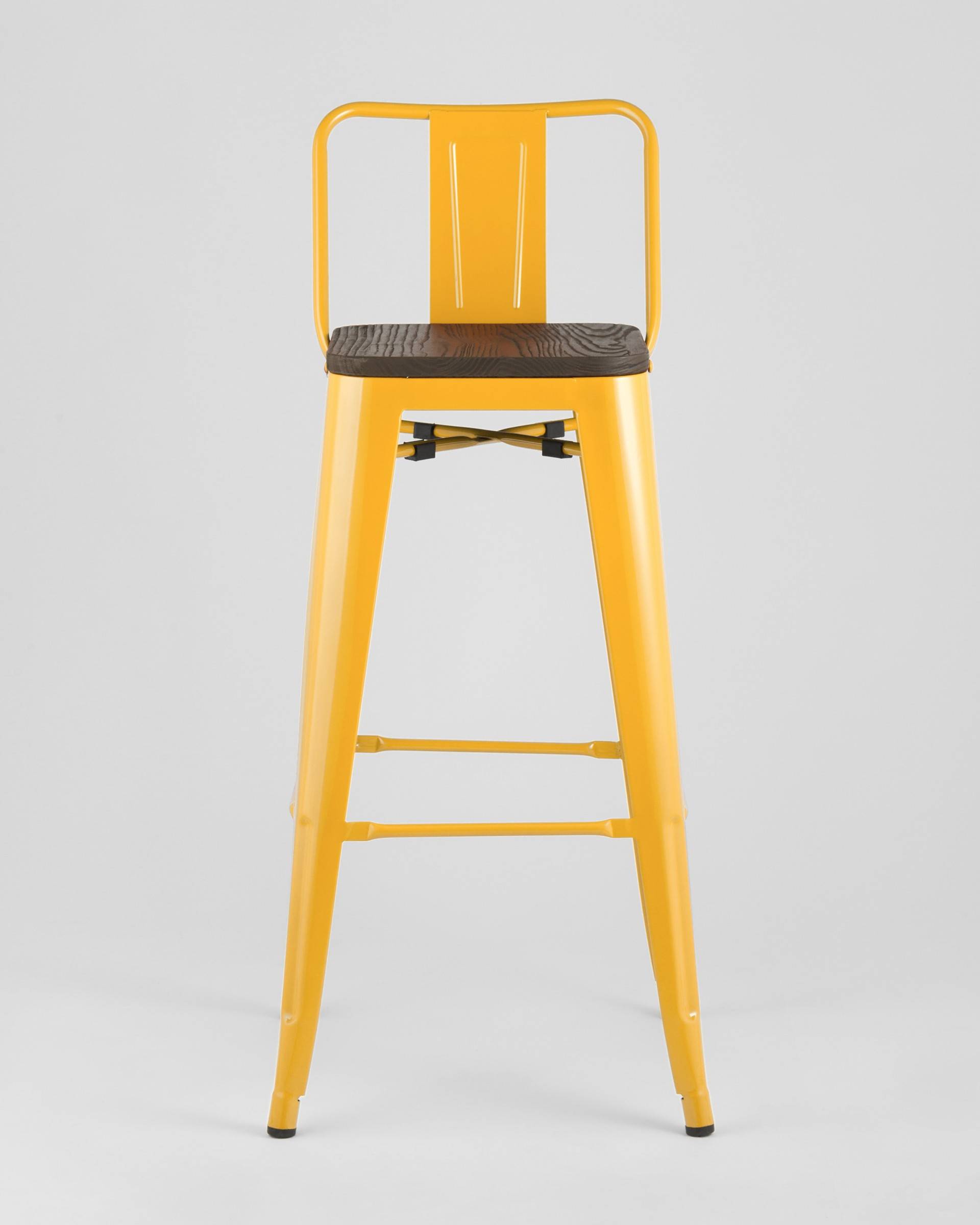 Стул Stool Group TOLIX WOOD со спинкой желтый, массивное металлическое основание желтого цвета, широкая низкая спинка