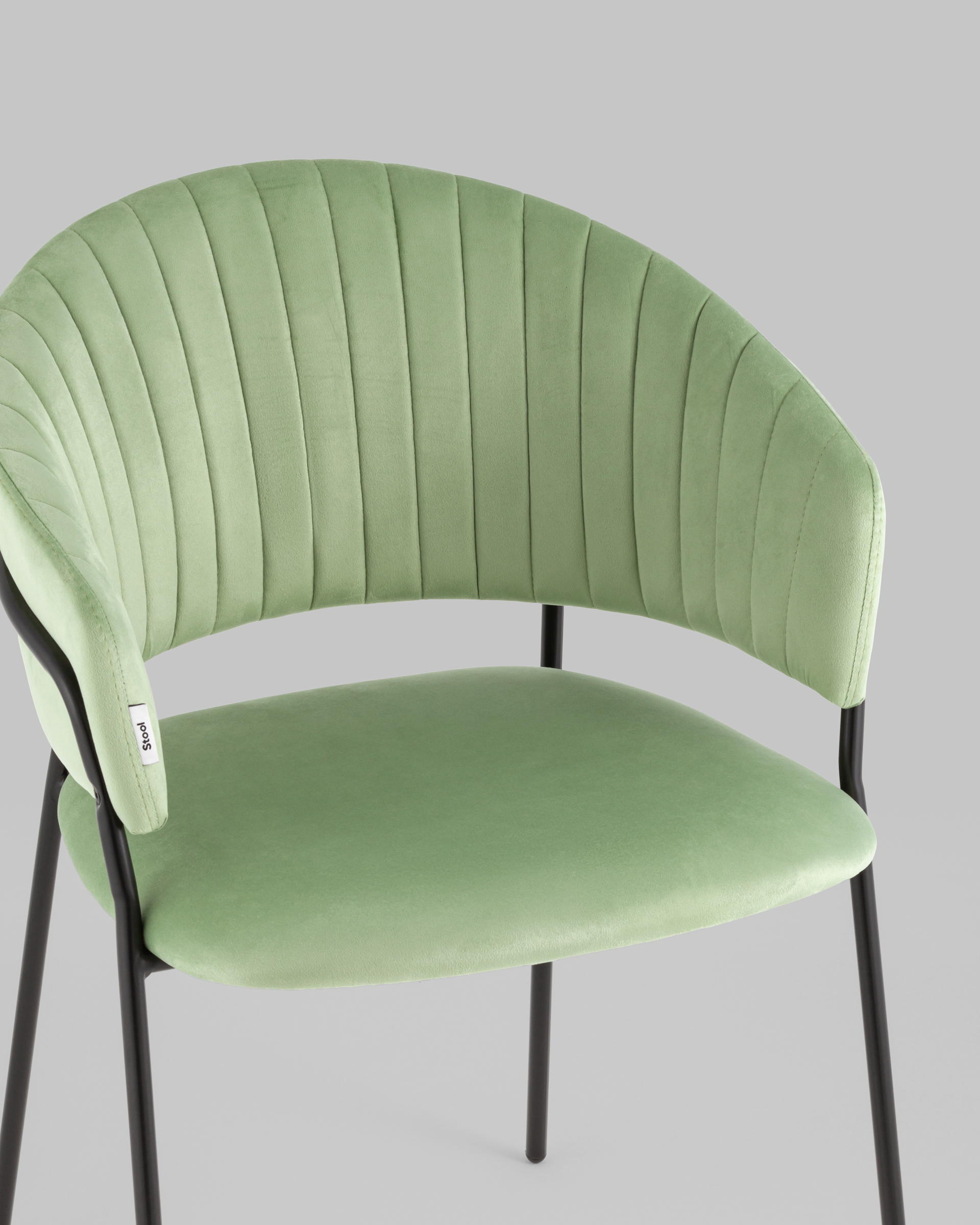 Стул с подлокотниками Бруно велюр фисташковый ножки черные металл