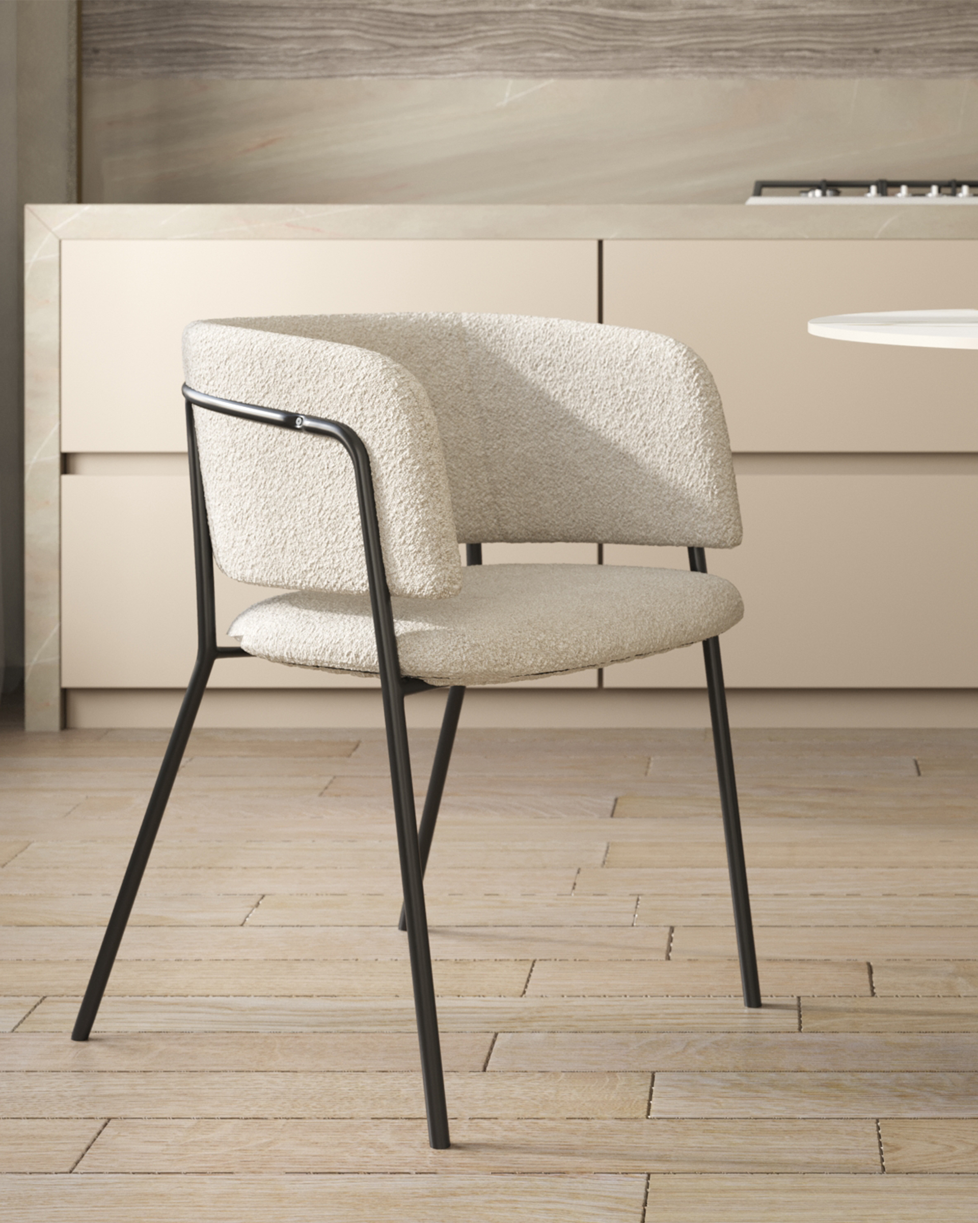Стул Нэлли букле белый без подлокотников ножки металл черные