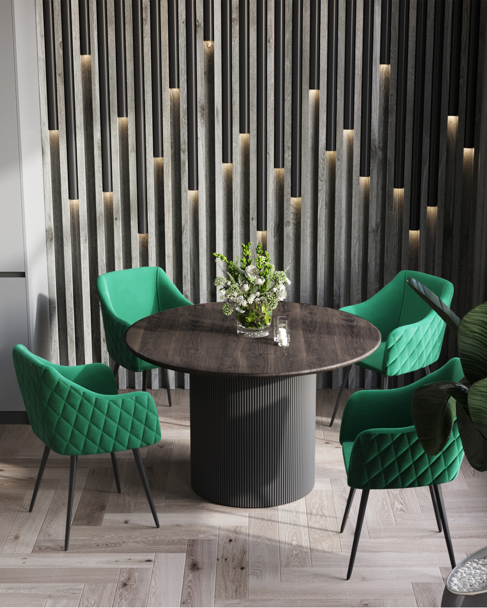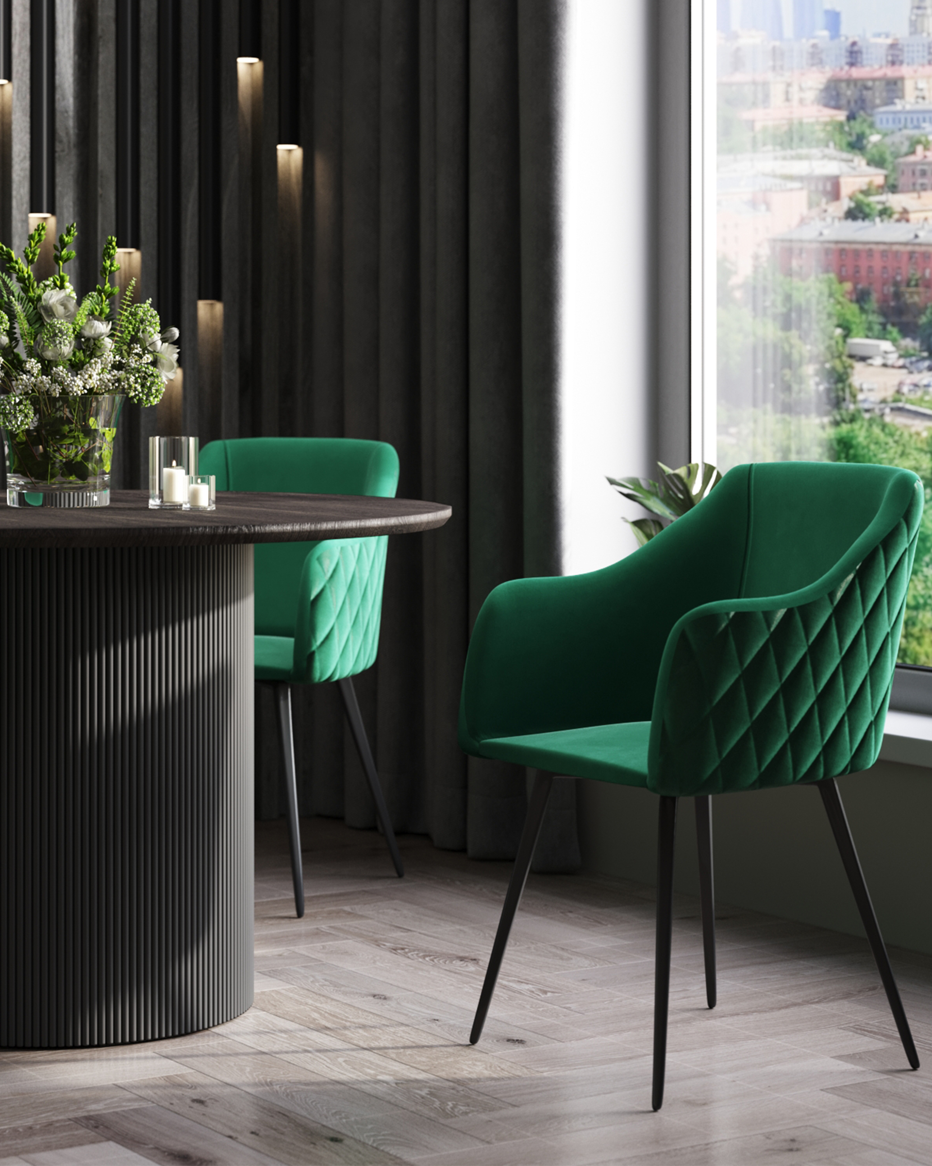 Стул Ника вращающийся велюр изумрудный обеденный ножки металл черный