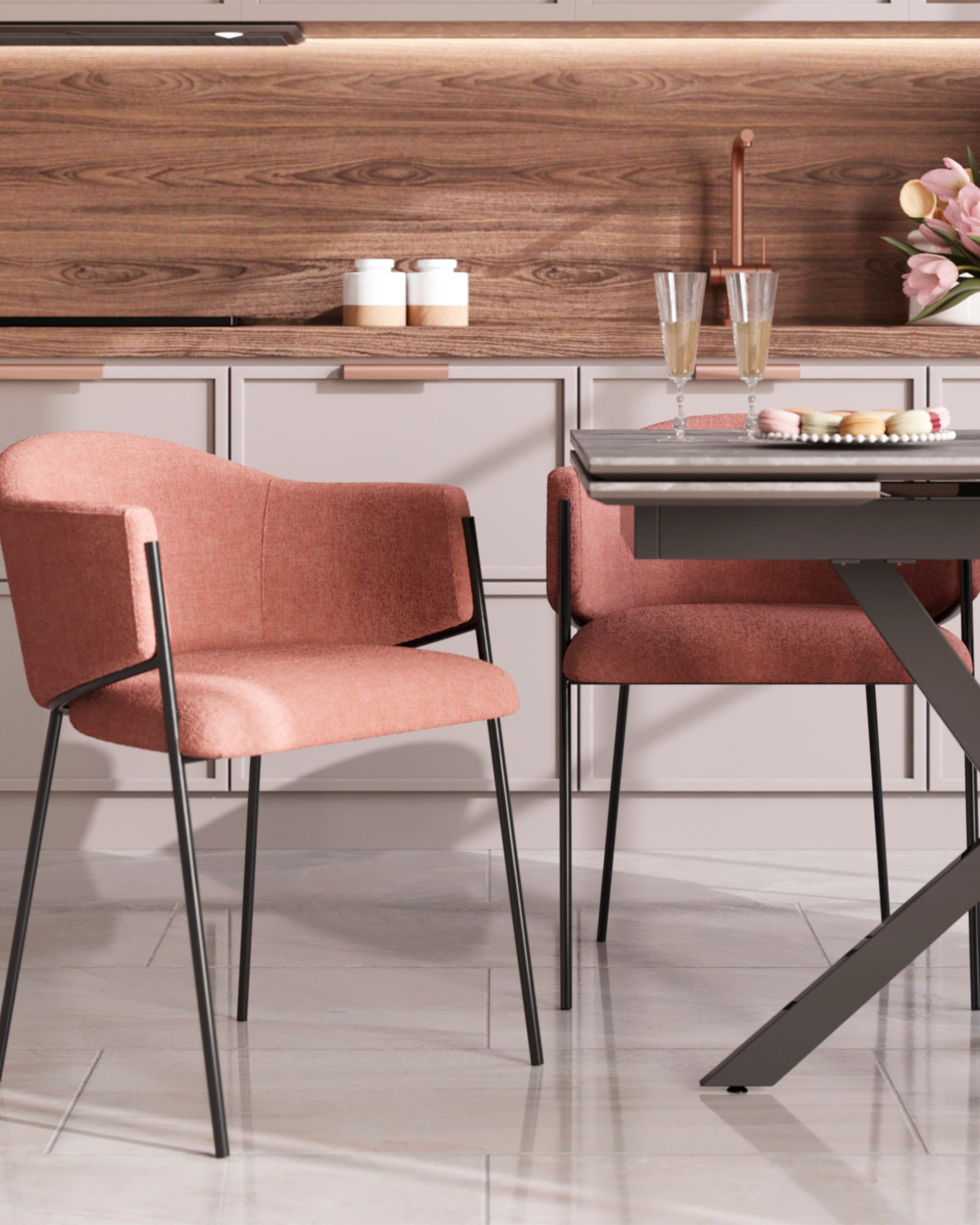 Стул обеденный Carmel шенилл пыльно-розовый