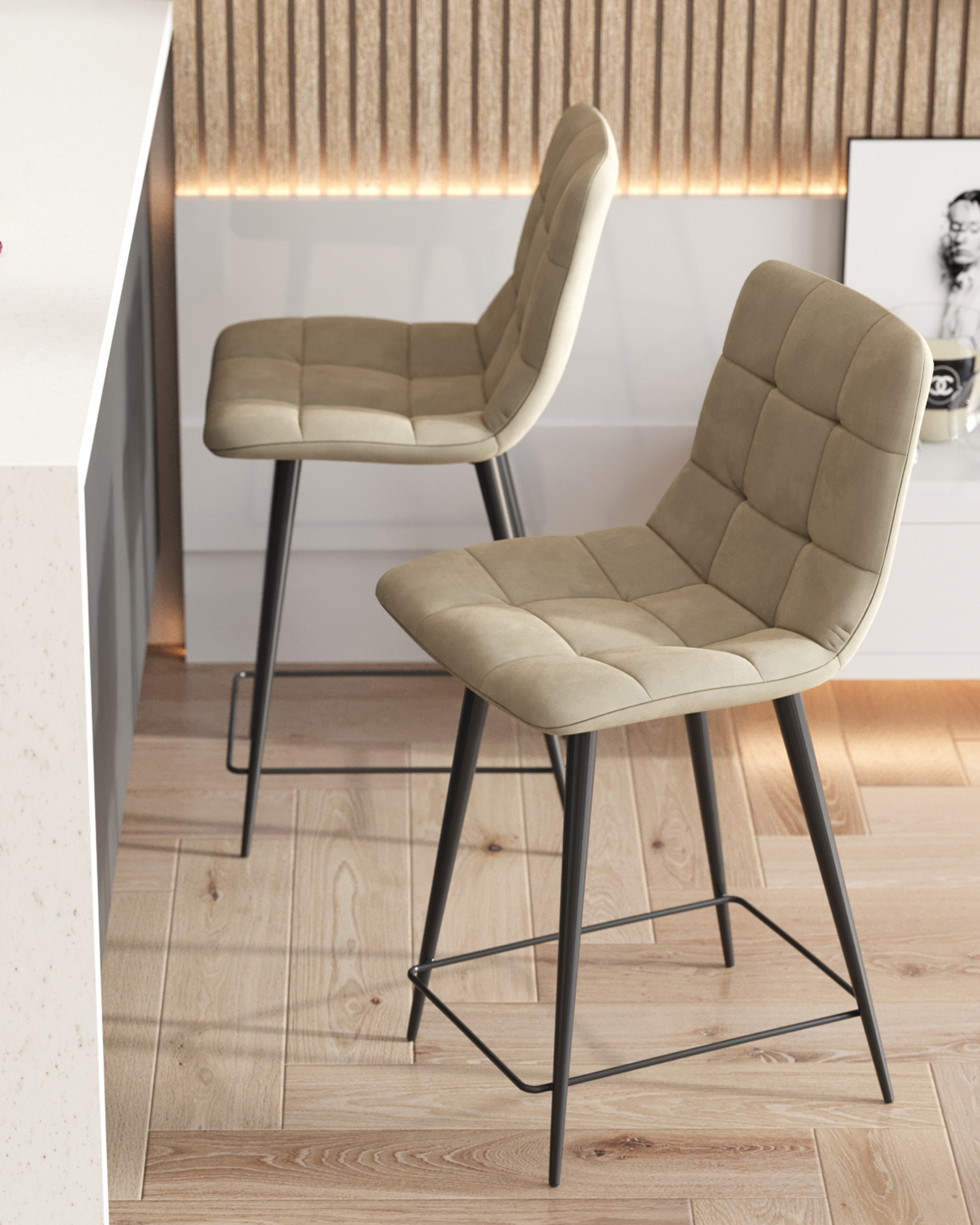 Стул полубарный Джанго велюр бежевый высота сиденья 60 см