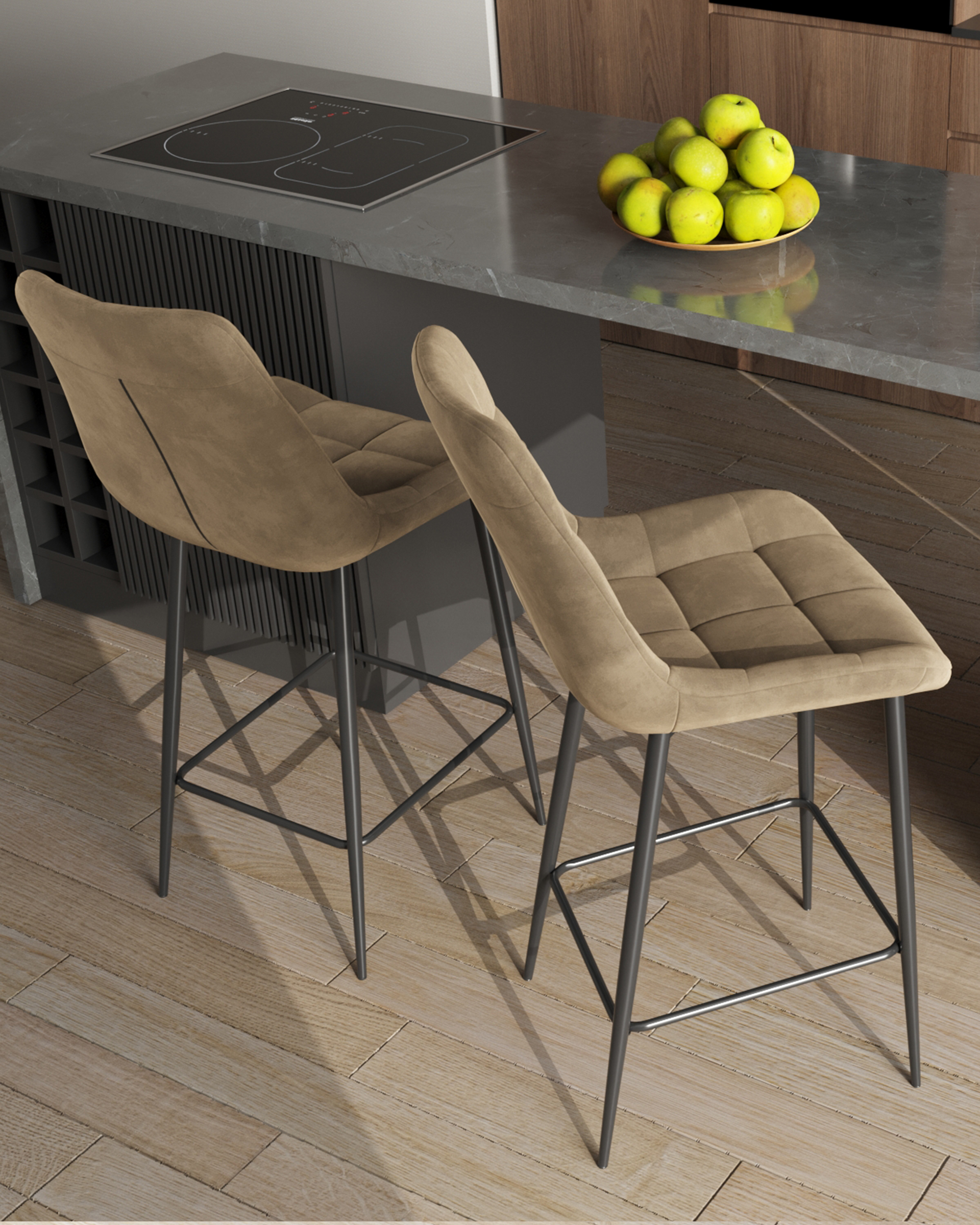 Стул полубарный Флекс обивка велюр капучино ножки металл черные